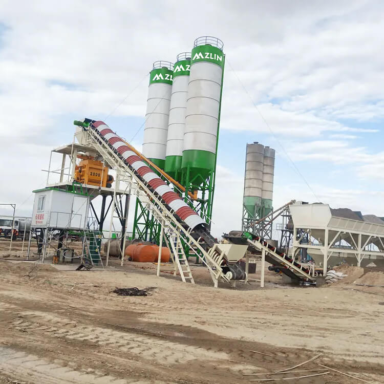 The main machine of the concrete batching plant adopts a twin-shaft forced concrete mixer, which is easy to maintain, has good mixing quality and high efficiency.