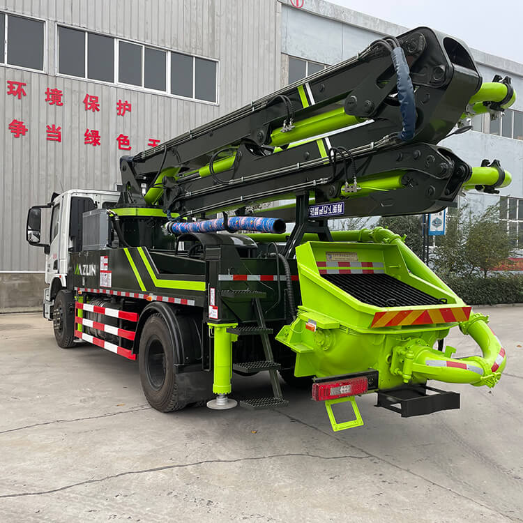 The 25M concrete boom pump is a machine that continuously conveys concrete along a pipe using pressure. It consists of a pump body and a delivery pipe. The pump body is mounted on a car chassis and equipped with a telescopic or bendable boom to form a concrete boom type pump truck.