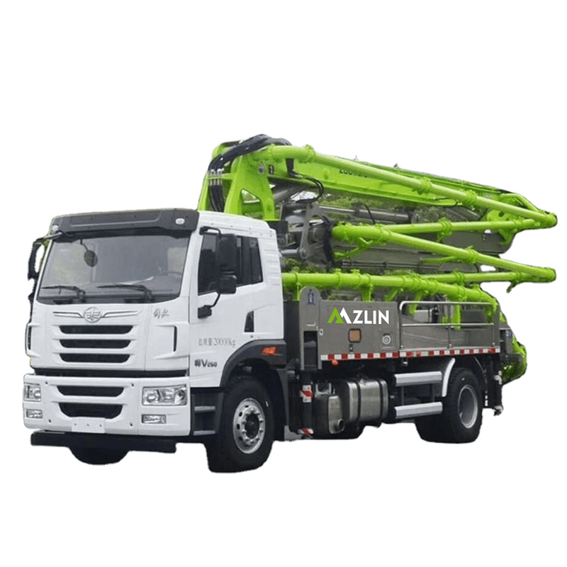 The 56M concrete boom pump is a machine that continuously conveys concrete along a pipe using pressure. It consists of a pump body and a delivery pipe. The pump body is mounted on a car chassis and equipped with a telescopic or bendable boom to form a concrete boom type pump truck.