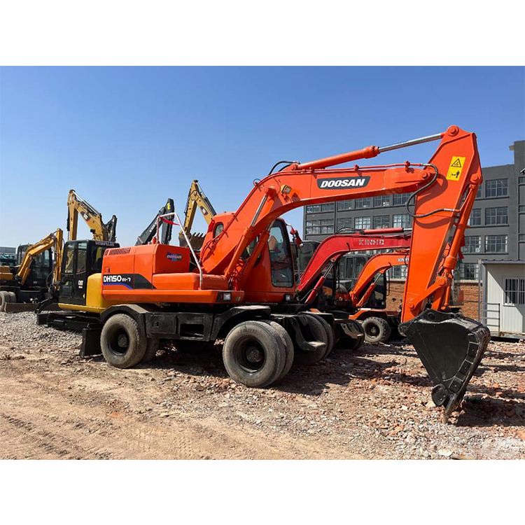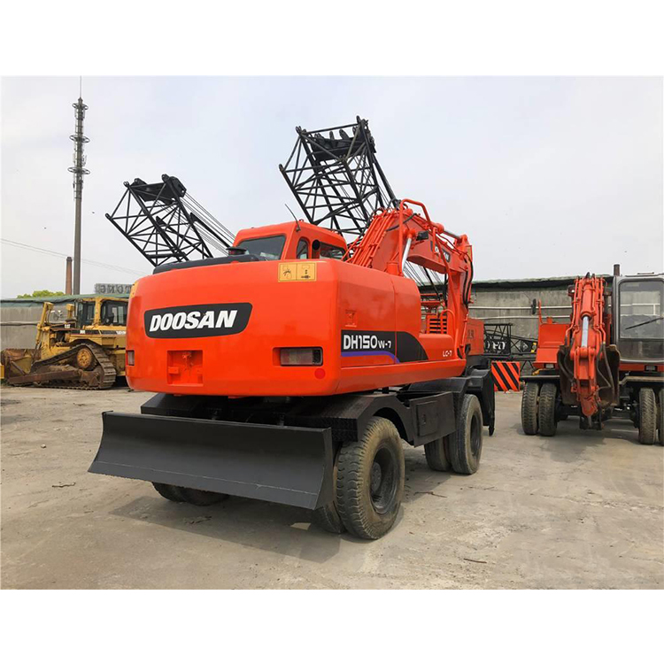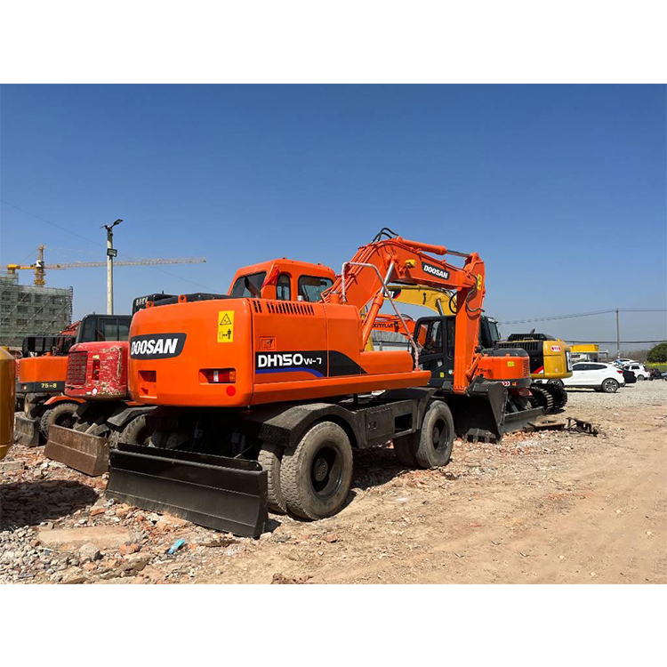 DOOSAN DH150W-7 Wheeled Excavator Doosan DH150W-7 excavator is a wheeled excavator with the obvious advantage of being flexible and not damaging the road surface. In addition, it also has the characteristics of strong power, safety and stability of crawler excavators. It has a wide range of uses in areas where the terrain is rough and the amount of earthwork is not large.