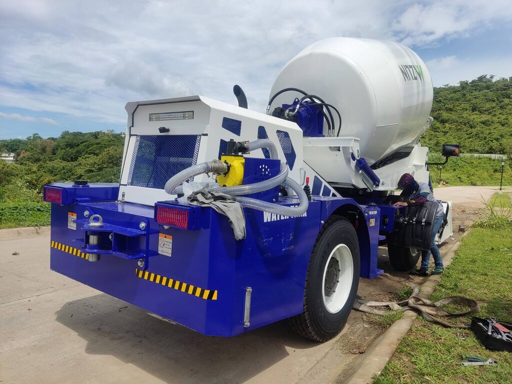 The delivered unit is a 4 cubic meter self-loading concrete mixer, engineered for medium and large-scale construction projects such as road works, rural infrastructure, residential buildings, and commercial developments.